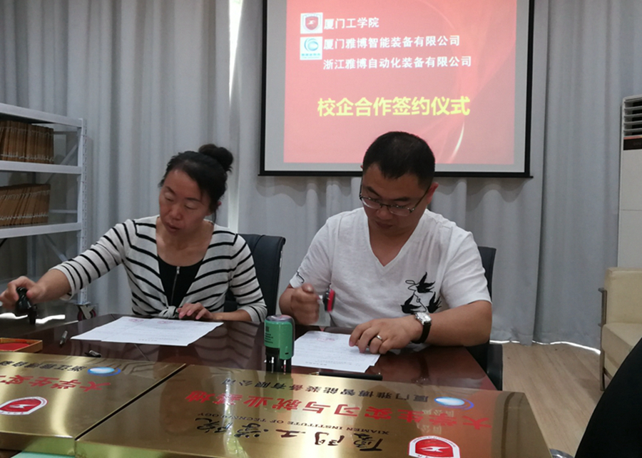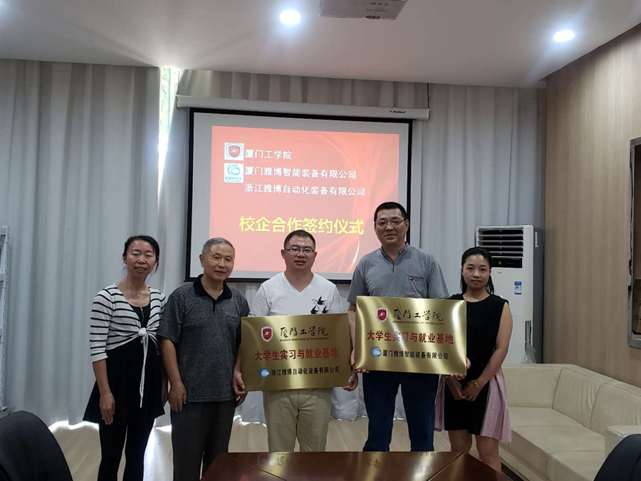 浙江雅博自动化设备有限公司与厦门工学院共建大学生实习基地,浙江雅博自动化设备有限公司把研发创新作为公司发展战略的核心,以市场为导向,为了把握最新前沿技术,提升公司人才团队技术实力,通过公司研发团队和科研院校的项目合作,互补长短,我们取得了众多科研成果,极大的提升了产品的市场竞争力,为客户提供了优质高效的自动化设备产品。